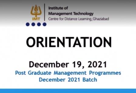 The Orientation Session for December 2021 batch was successfully conducted on 19th December 2021. Director Prof. S.R. Musanna, Senior Dean Prof. Ravindra Kumar, and Dean Academics Prof. Asif Zameer addressed the students, highlighting the importance of work-life balance, nuances of ODL systems and, academic rigor and discipline. Dr. Nidhi Mathur and Ms. Shilpi Rhituparth anchored the session, orienting students towards program structure and academic processes at IMT CDL.
